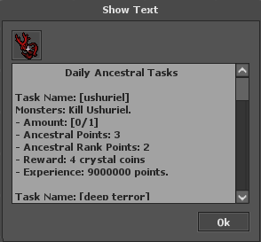 Ancestral Points are adquired doing Tasks, each task give different amount of Ancestral Rank Points.