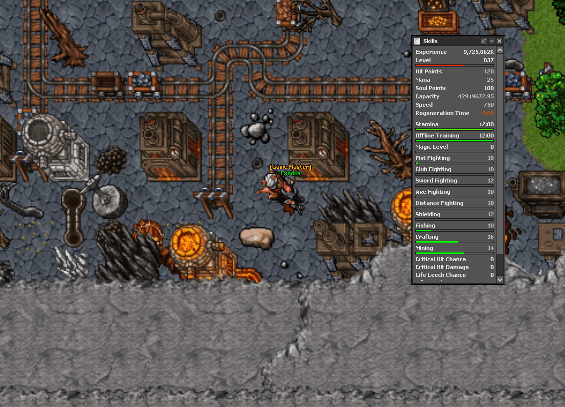 New Mining System with custom Skill Mining, start gathering with a pick on veins founded around Hellgrave! There is 7 Types of veins that can be minned each stone is linked to required pickaxe, it means, you need the required pick to gather a vein, crafting a new pick can be comfortable to gather every vein. You may also enough mining level required to crush the stone and/or to create the recipes in the Mining Forge, when looking at a recipe, the recipe will tell what it is for, the items required, the crafting level required and if you have unlocked the recipe. Recipes can be looted from monsters. The Mining Forge is located at north of Thais. Ingots are currently sold to the npc Elyotrope in the Mining Forge, later they will be used for various crafts. On the website they have Wikipedia - Mining indicating the information.